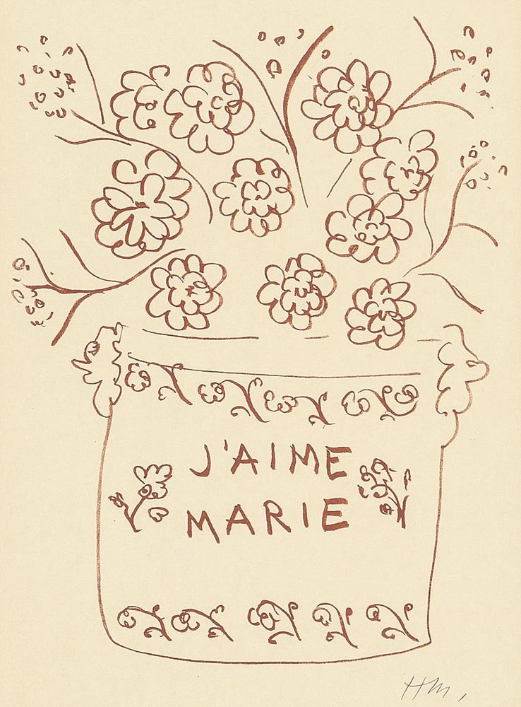 Henri Matisse, J'aime Marie D. n. 25 p 216 [V], Lithograph, 1948, from Florilège des Amours par Ronsard, signed with monogram